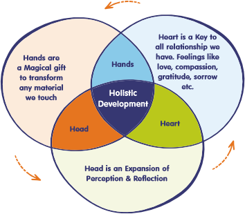 At H3, we emphasize the 3H’s – Hands, Heart, and Head – as the core pillars of our educational approach, moving beyond the traditional focus on Reading, Writing, and Arithmetic.
